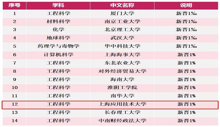 根据最新公布的ESI数据显示,中国内地一共355所高校有学科进入全球ESI学科排名前1%,我校此次有4个学科入选。长期以来,学校坚持主动对接国家战略和区域经济社会发展,瞄准行业企业亟需解决的关键共性技术问题和“卡脖子”技术问题,加强与行业头部企业的合作,共建高水平学科平台,在重大应用基础研究领域取得了丰硕的研究成果。学校发展坚持以新时代教育评价改革工作为发展动力和目标引领,科学分析评价指标内涵,把学校内涵建设与上海高校分类评价紧密结合,连续四年在上海高校分类评价中位居“应用技术型”高校第一。