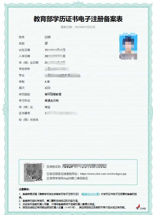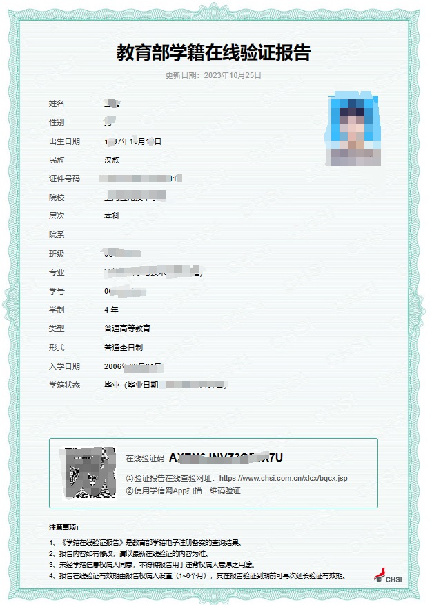 | 《教育部学籍在线验证报告》