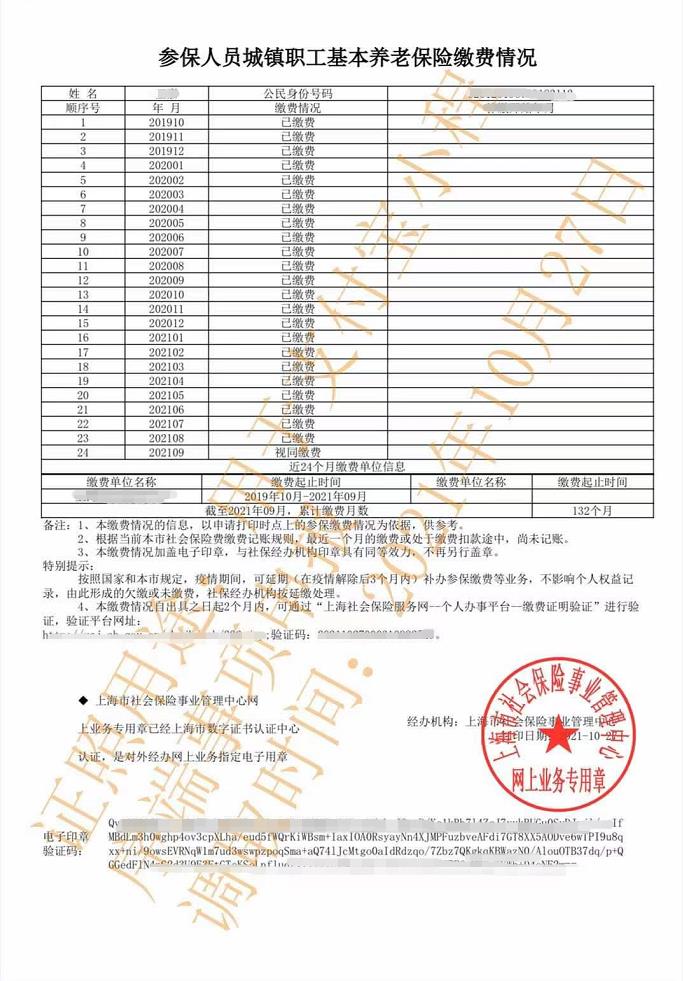 | 2023年连续6个月在上海的社保缴费成功记录(补缴记录有效)[需至社保网点打印《参保个人城镇基本养老保险缴费情况》。或在随申办市民云app首页搜索参保人员城镇职工基本养老保险缴费情况,查询后截图上传即可。