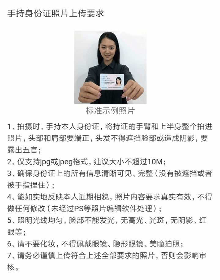 2. 本人手持身份证照片,照片要求见下图: