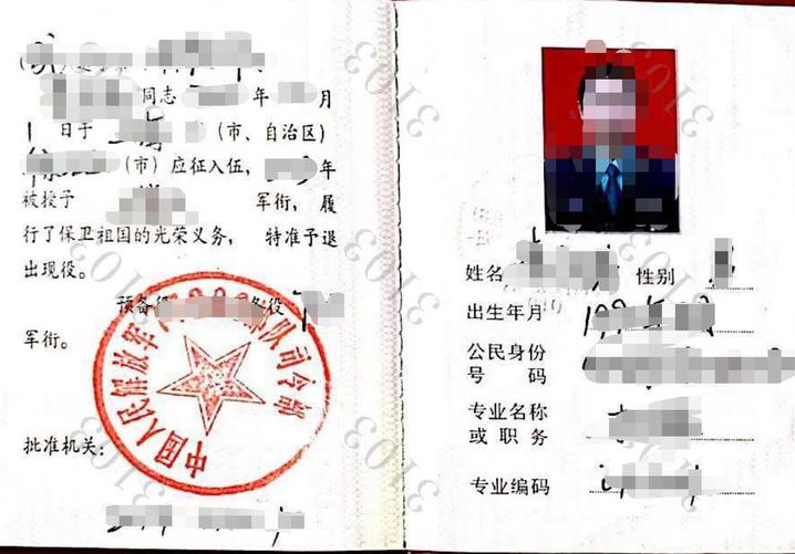 | 国防部征兵办盖章的本人《入伍批准书》和《退出现役证》