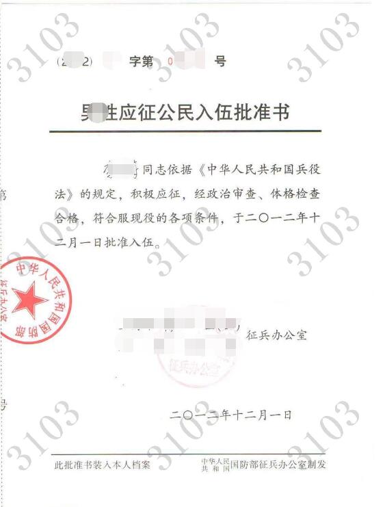 附件6《入伍批准书》