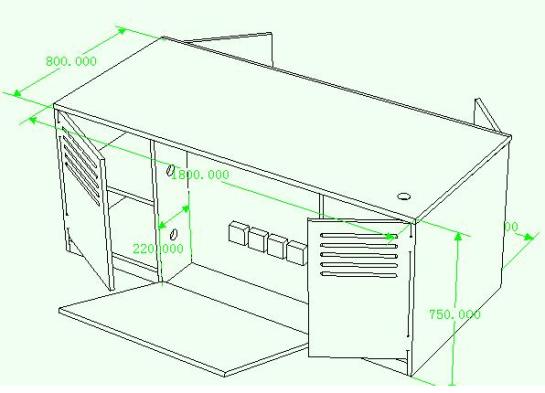 (5)距离背面门100mm处两边分别放置强、弱电线槽。(防信号一干扰)