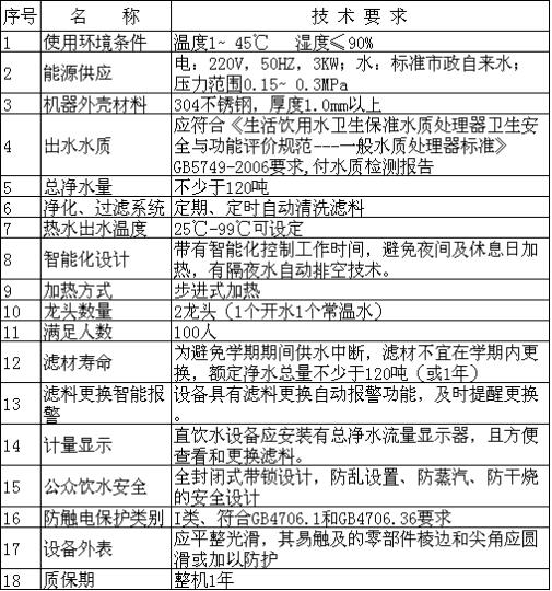 附件:直饮水机技术参数及要求(数量7台)