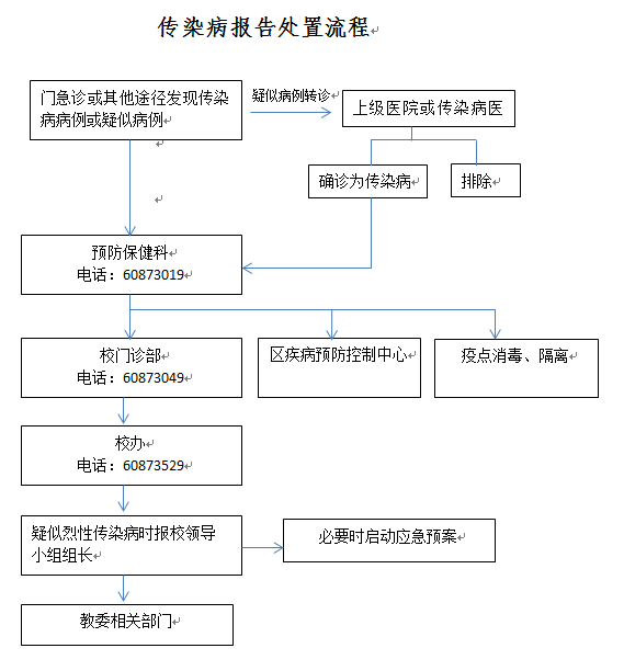 (1)为快速有效处置突发公共卫生事件,学校成立了突发公共卫生事件应急工作小组,分管副校长为组长,后保处、学工部、保卫处、门诊部主要负责人参加,该小组日常工作由校门诊部负责。