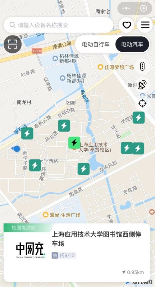奉贤校区共建设58个汽车充电桩(慢充42个、快充16个)和1个电动自行车重点站(60个充电插座),缓解师生新能源汽车及电动自行车充电难的问题,增强师生的满意度和幸福感。同时减少环境污染,积极相应国家节能减排的政策,推动绿色出行理念和实践。